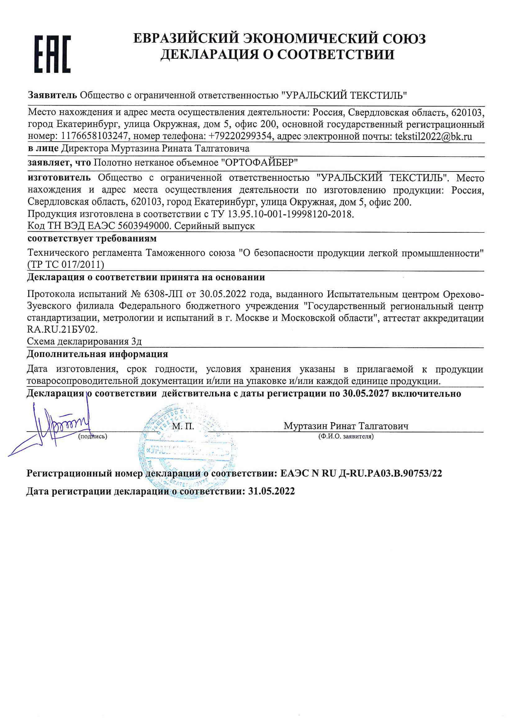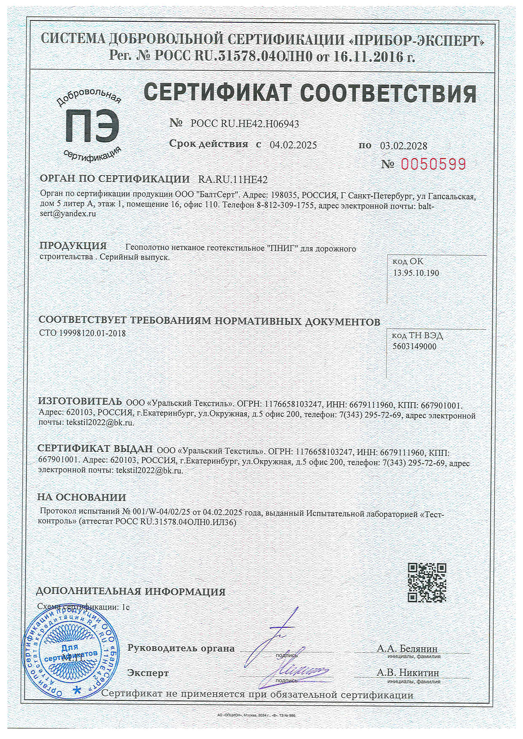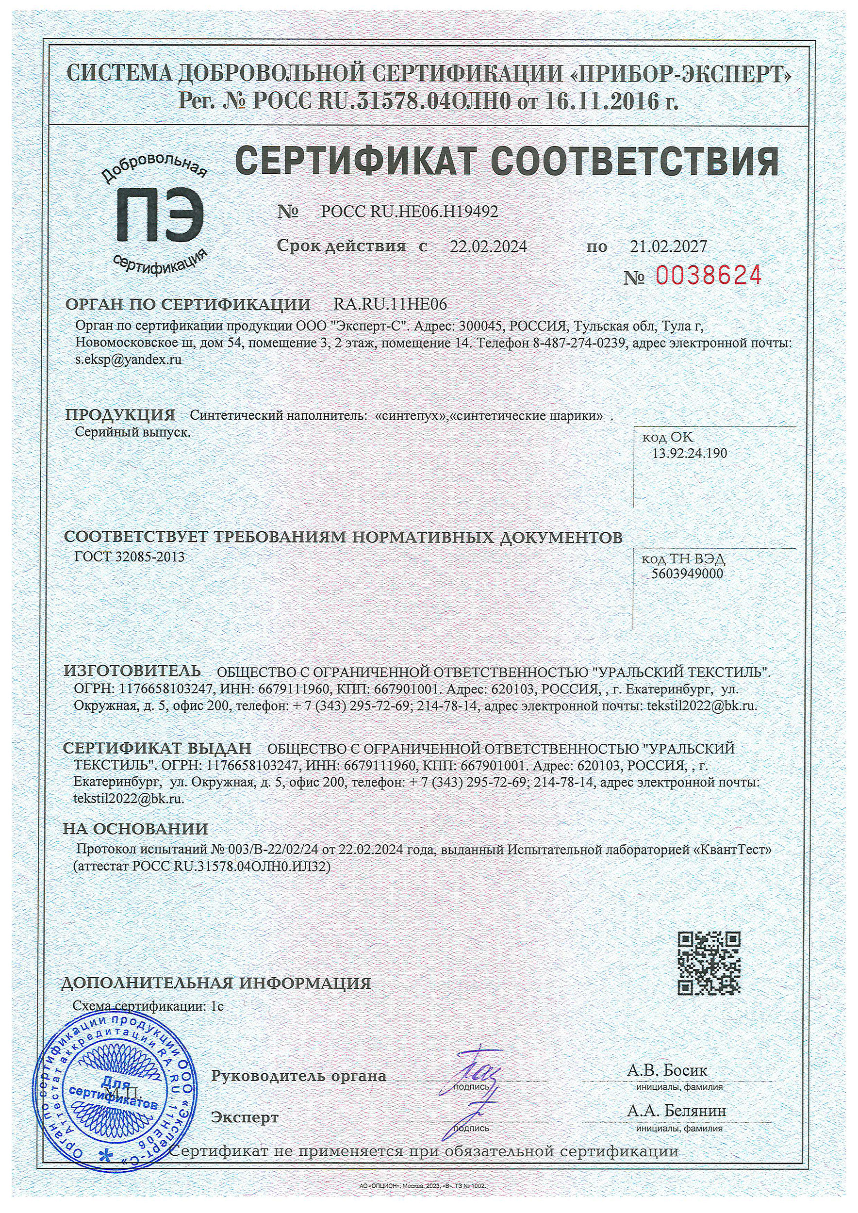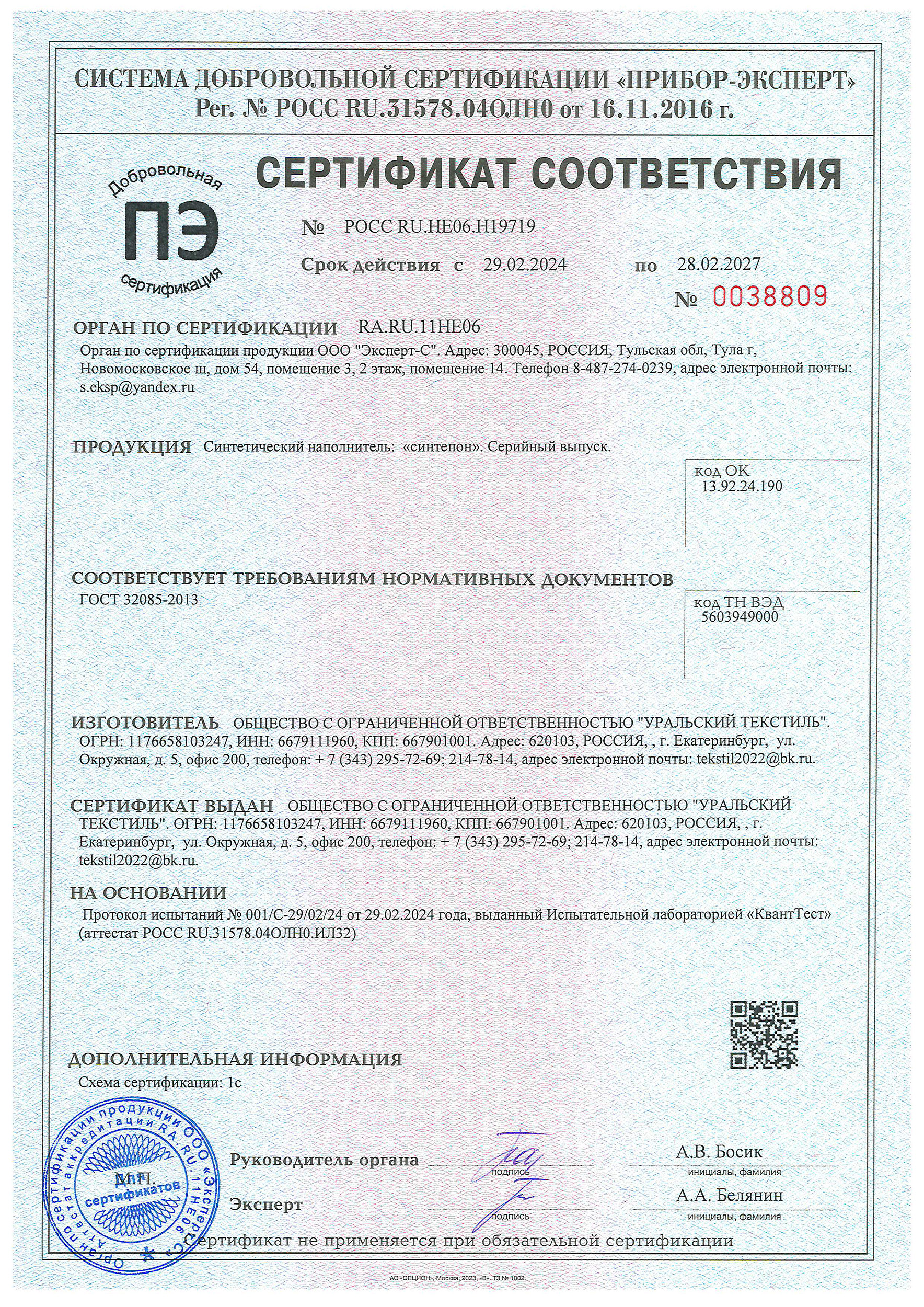 В этом разделе представлены актуальные сертификаты компании «Уральский текстиль».